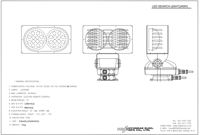 HYUNDAE ELECTRIC LED SEARCH LIGHT 240W
