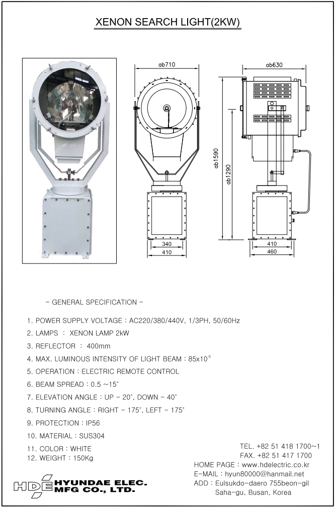 HYUNDAE ELECTRIC XENON SEARCH LIGHT 2000W