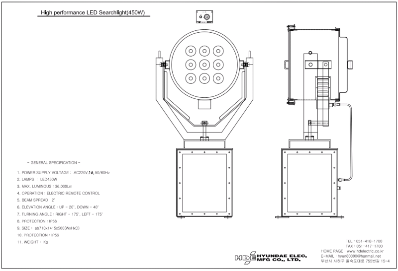 HYUNDAE ELECTRIC LED SEARCH LIGHT 450W High Performance