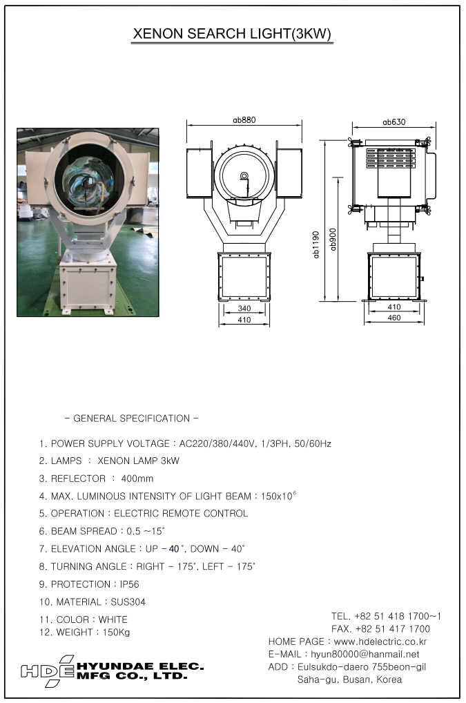 NT Xenon Search Light / HDX30E > Download | Hyundae Electric Mfg