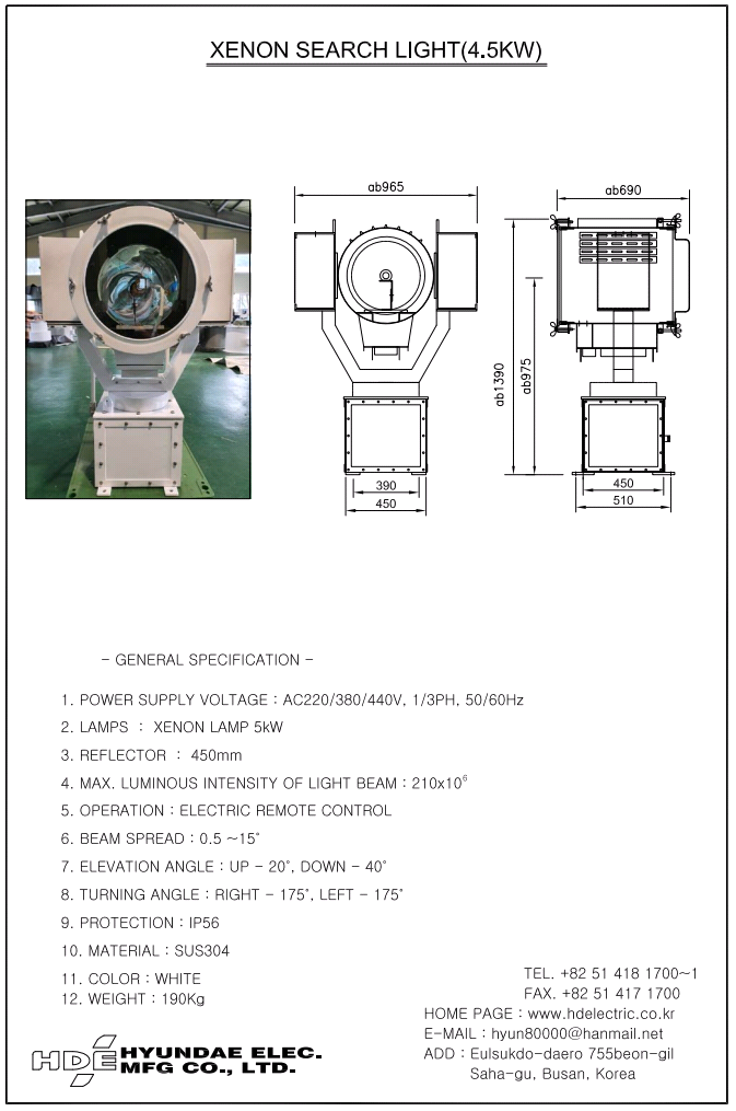HYUNDAE ELECTRIC XENON SEARCH LIGHT 4500W Essential