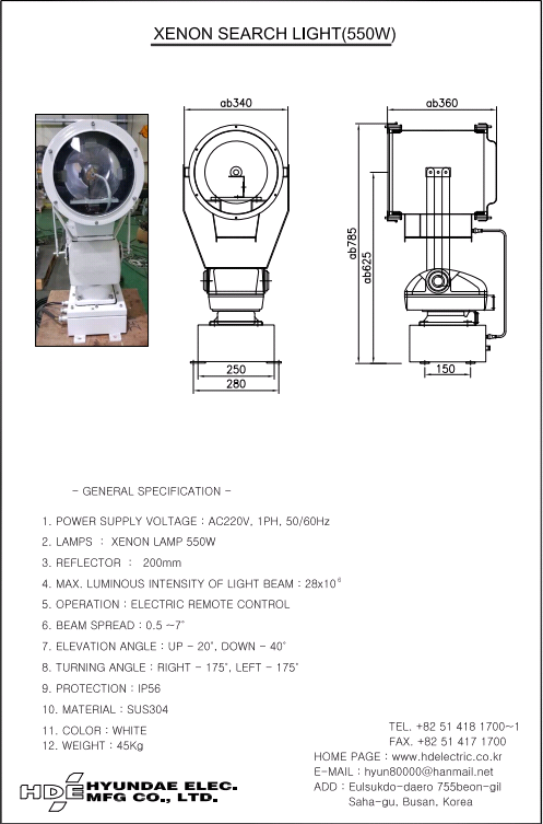 Search Light Xenon Search Light / HDX05 페이지 정보 작성자 현대전기 댓글 댓글 0건 조회Hit 151회 작성일Date 25-10-17 08:58 본문 HYUNDAE ELECTRIC XENON SEARCH LIGHT 550W List 이전글Xenon Search Light / HDX07 25.10.17 다음글Winch Control SYSTEM 25.10.17
