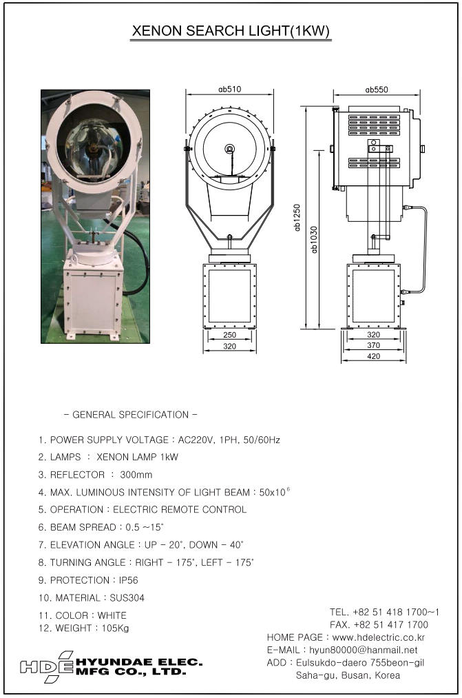 Search Light Xenon Search Light / HDX10 페이지 정보 작성자 현대전기 댓글 댓글 0건 조회Hit 159회 작성일Date 25-10-17 08:59 본문 HYUNDAE ELECTRIC XENON SEARCH LIGHT 1000W List 이전글Xenon Search Light / HDX16 25.10.17 다음글Xenon Search Light / HDX07 25.10.17